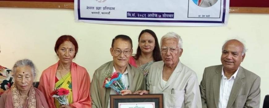 नेपाल प्रज्ञा प्रतिष्ठानको सहकार्यमा असोज ७ गते सञ्चालित विशेष समारोहबीच नेपालका प्राज्ञिक क्षेत्रका स्तम्भ संस्कृतिविद् प्रा.डा. प्रेम खत्री को कृति साना निबन्ध को विमो ...